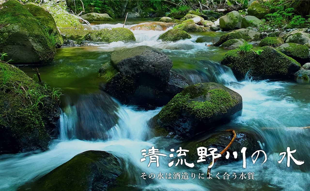 社名銘柄の由来です。野川の水は花崗岩の天然のフィルターを通った,硬度が22の「超軟水」の水。軟水は味にくせがなく、素材が持つ本来の香や味わいを引き立てる水といわれています。