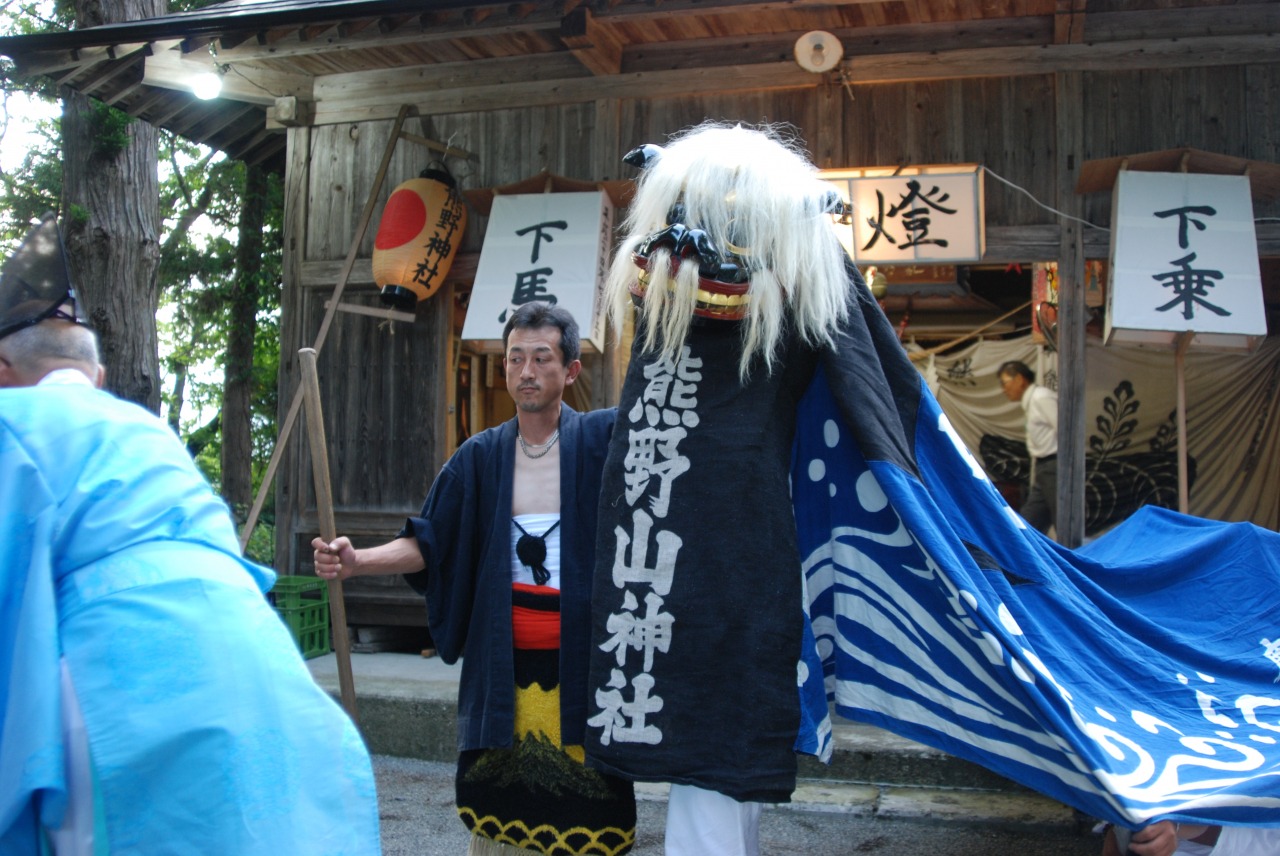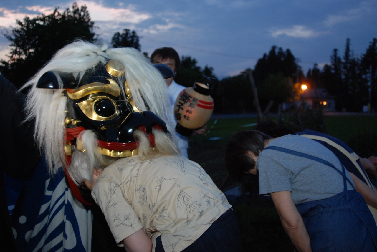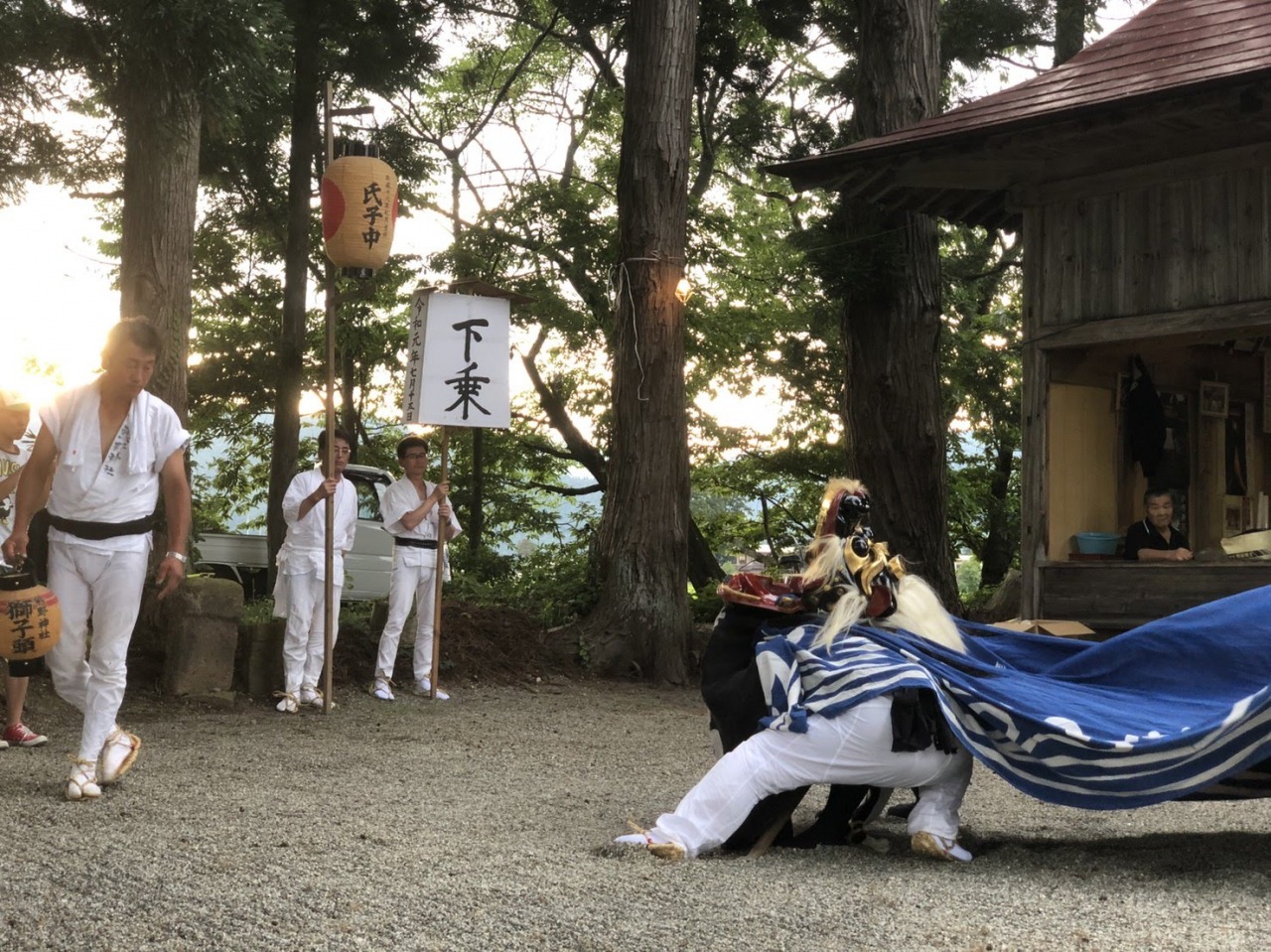 獅子舞は、親、子、孫の三世代が多数参加する盛大なお祭りです。