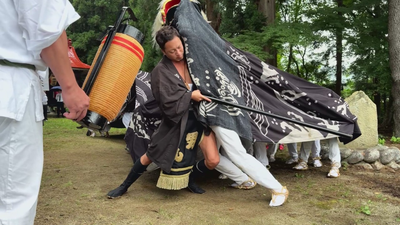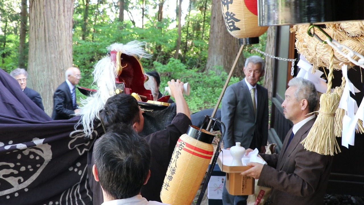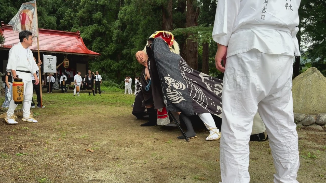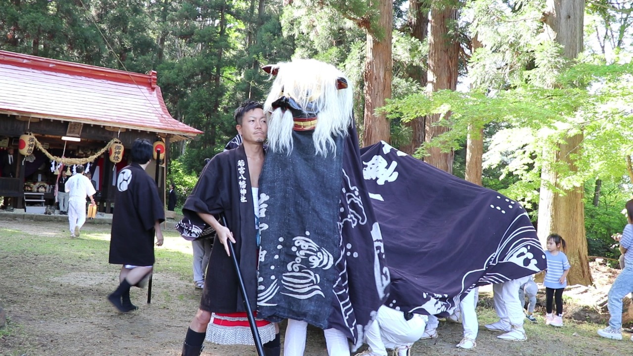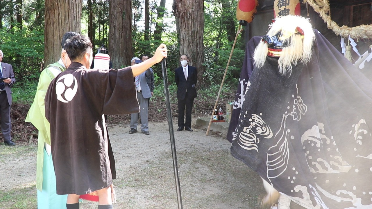 5月の春祭りに境内で獅子舞が舞われ、9月の例祭には、獅子舞の行列が邪気を祓い、氏子の繁栄を祈念するため地区内全域を練り歩きます。当神社の獅子舞の警護と獅子の力比べにおける姿勢の低さは町内随一で、また声をかけながら一気に宮入させる流れは特徴的です。
