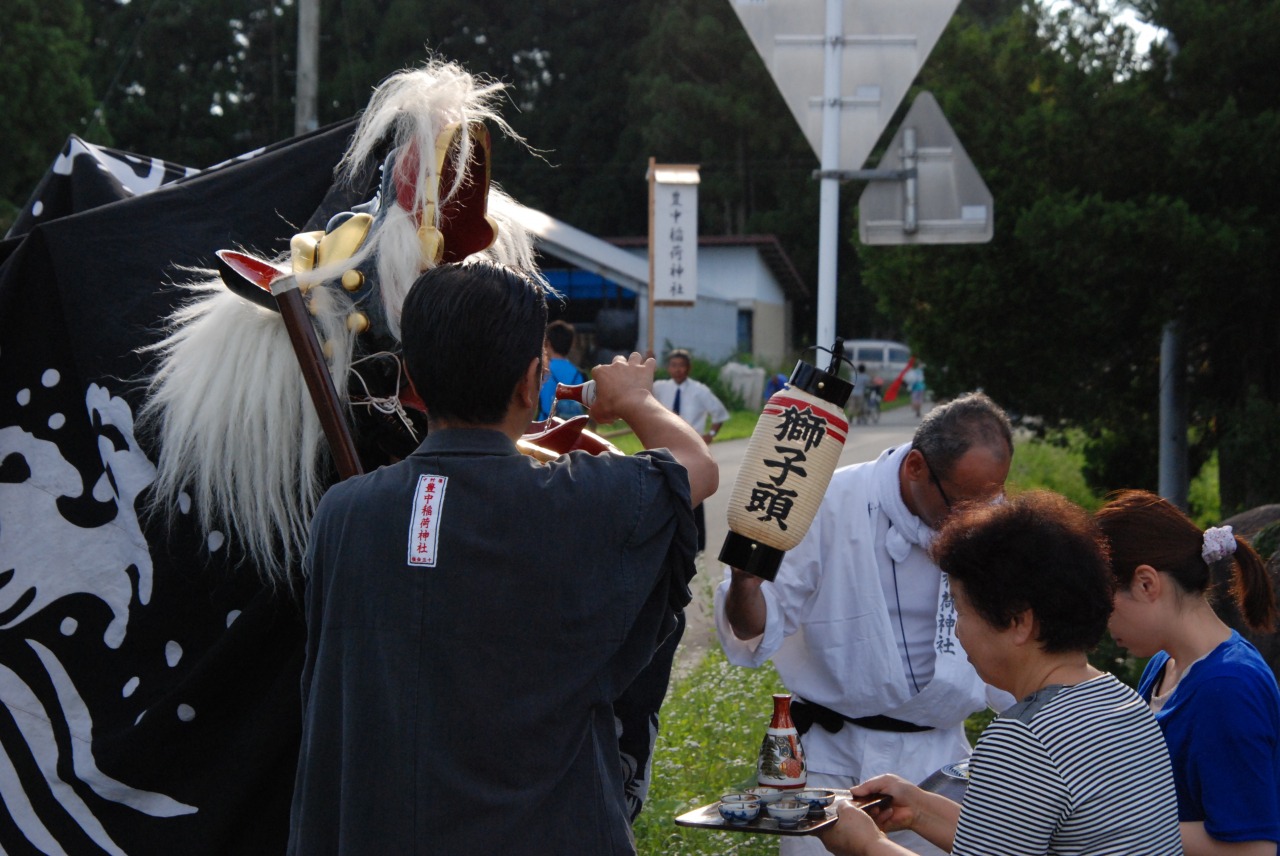 この神社に祈願すると、大きな冷災害に見舞われることが少なくなり、この話が集落に広まると、やがて若衆によって獅子舞が奉納されるようになりました。現在も獅子舞が氏子宅を回り、家内安全・五穀豊穣を祈願しています。