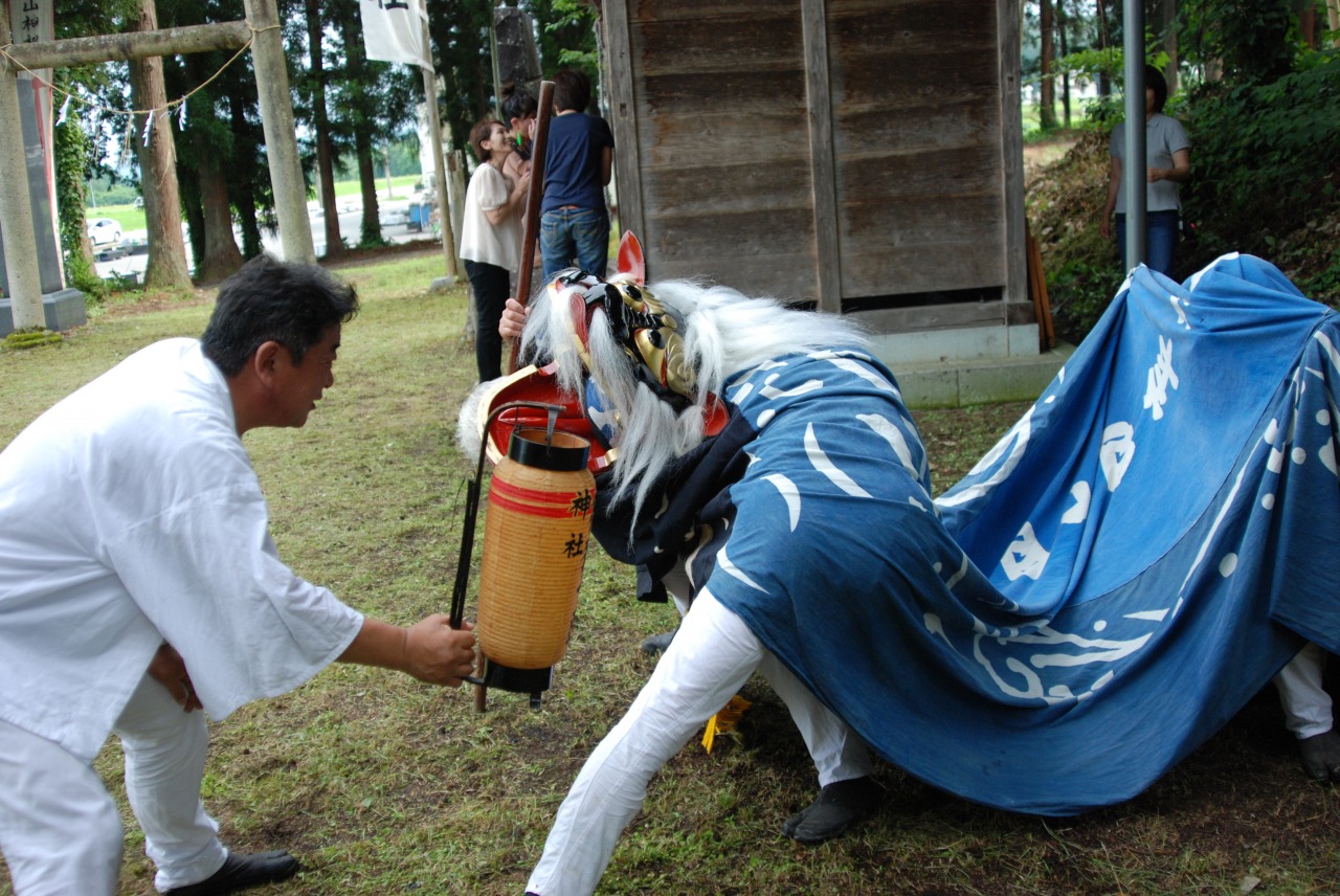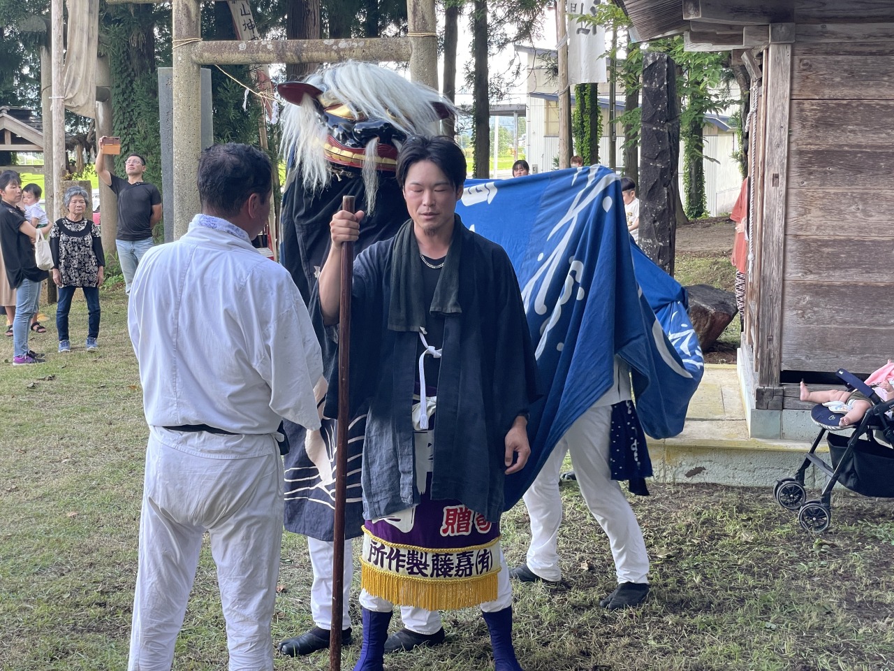 現在、地元に残っている氏子を筆頭として、地域を離れた氏子衆も集まり、若連が獅子舞を奉納しています。