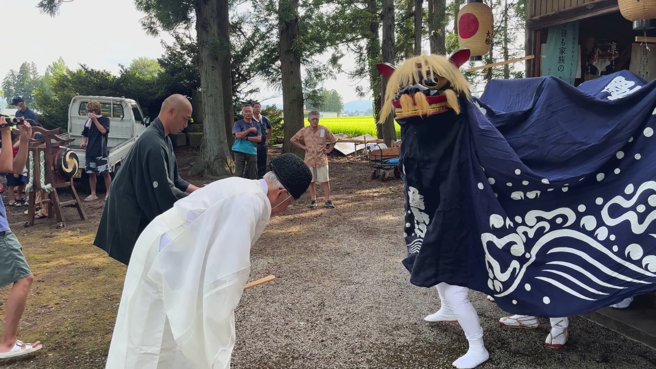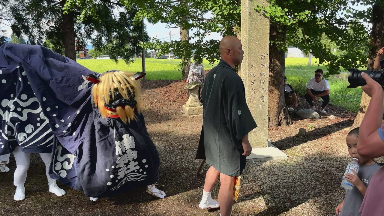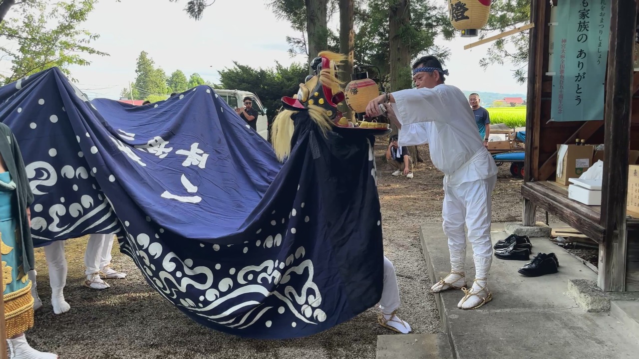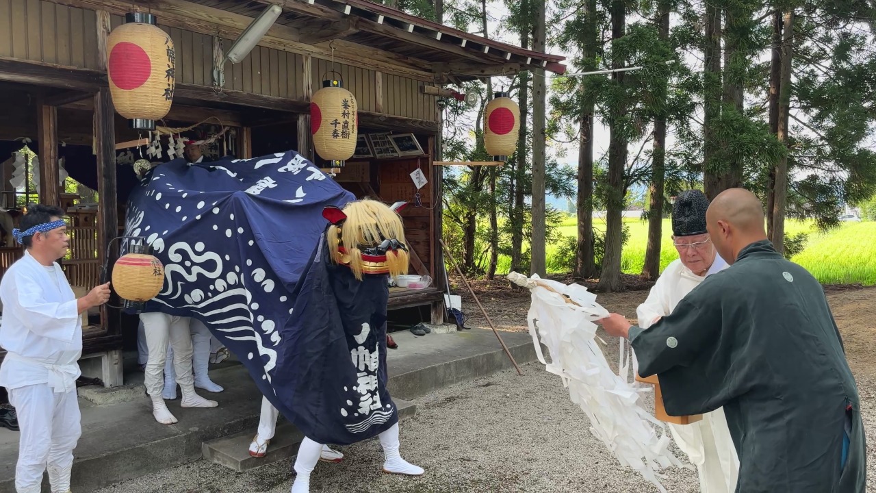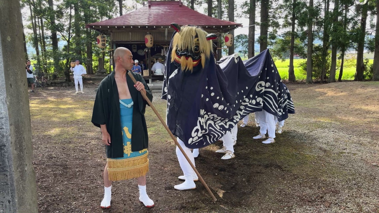 しかし大正2年(1913)9月に社殿が再建、その後も黒沢地区を代表する神社として村をあげたお祭りが行われています。氏子数は40軒程の神社ですが、「虹の会」の若衆が祭りの運営に参加し、氏子中の家内安全、五穀豊穣を祈願して獅子舞を行っています。